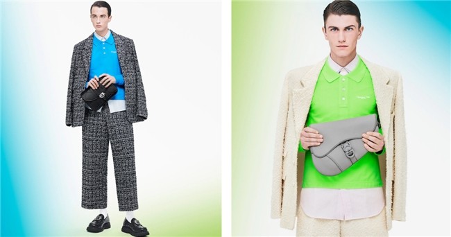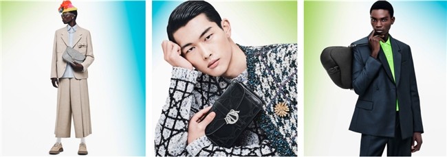 这些影像展现梦幻般易逝的背景,在蓝色、绿色、黄色、橙色和粉色的明亮色调下,与发布秀的“花漾男子”花园呼应,在清醒与肆意间巧妙平衡。