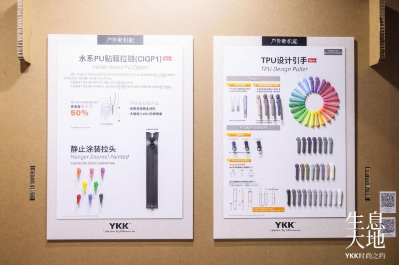 前沿新品静态展展示了YKK最新的前沿产品,为与会嘉宾提供了深入了解YKK技术、产品与品牌的机会。YKK最新推出的水系PU贴膜拉链(CIGP1)、TPU设计引手、Integrated-spring Snap SKN30K新款四合扣,以及DynaPel®、QuickFree®附带磁力开具、羽弦®、铝合金拉链、咬布减轻拉链等系列创新产品,受到了与会品牌的关注和欢迎。