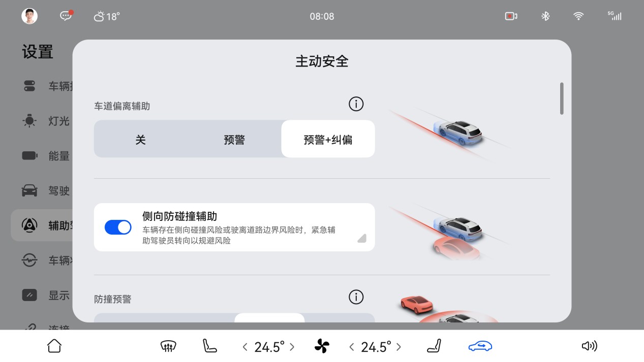 侧向主动安全能力也进一步提升。当车辆在正常行驶中偏离车道,系统感知车辆与道路侧面的成排水马、锥桶、路沿或栅栏等障碍物存在碰撞风险时,侧向障碍物防碰撞(LOCP)将触发介入转向,降低车辆碰撞风险,让主动安全能力再进一步。