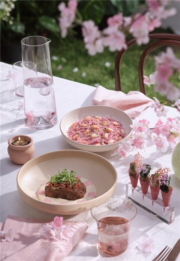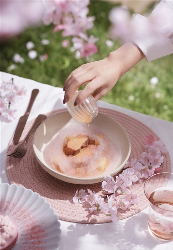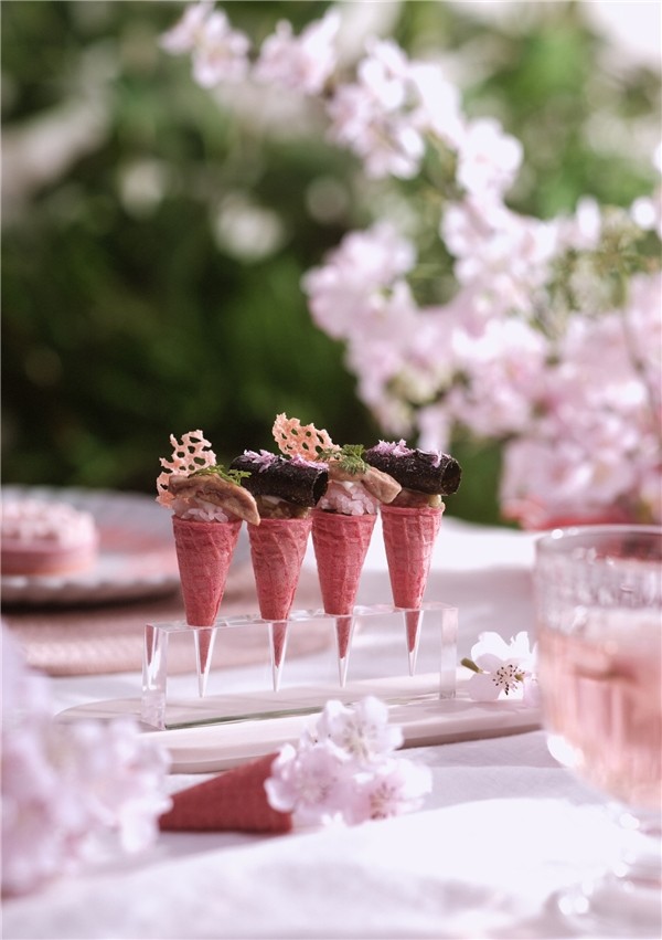循着“樱之花时”、赏味“樱之花食”、探索“樱之花事”。这一次,花厨不仅专注于“色、香、味、形”,还在餐品中增加了互动部分。食客们可亲手参与餐品创作的一环,感受摘一朵樱花、淋一场樱吹雪的趣味。借此,舌尖感应的信号,也将由口入心,流淌出自然生活的精神共鸣——只要心中有春天,美好的事物,皆“樱”你而来。