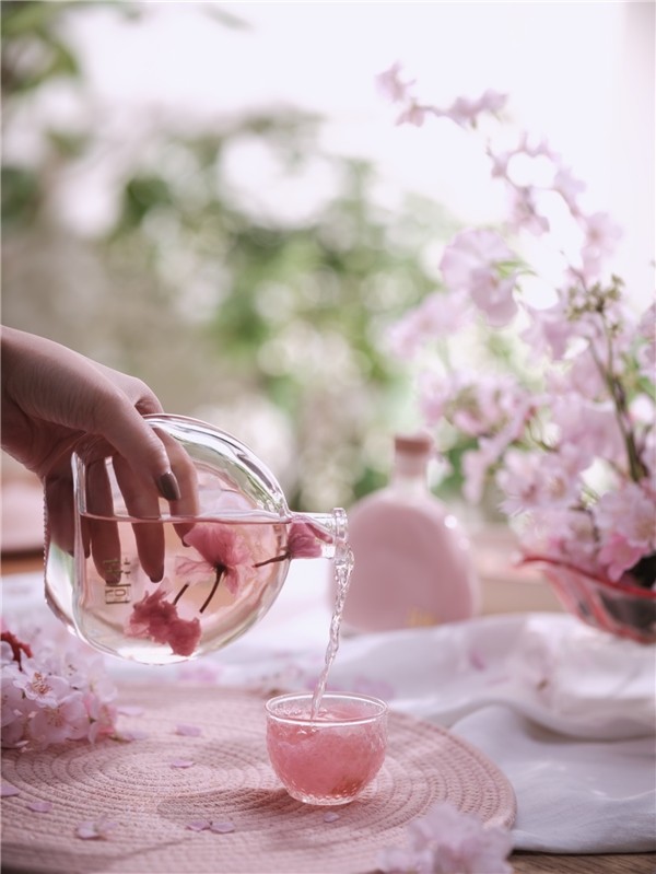 春季的雪梨缱绻为花,注入樱花月光白茶,呈现月夜樱花海的唯美意象,每倾倒一次樱花茶,梨形花朵都会在茶汤中盛放一次,浪漫且灵动。