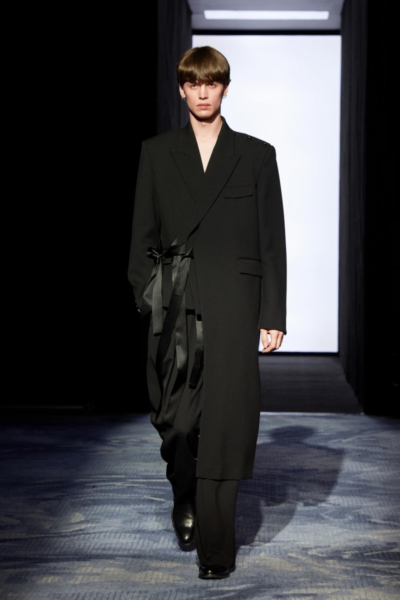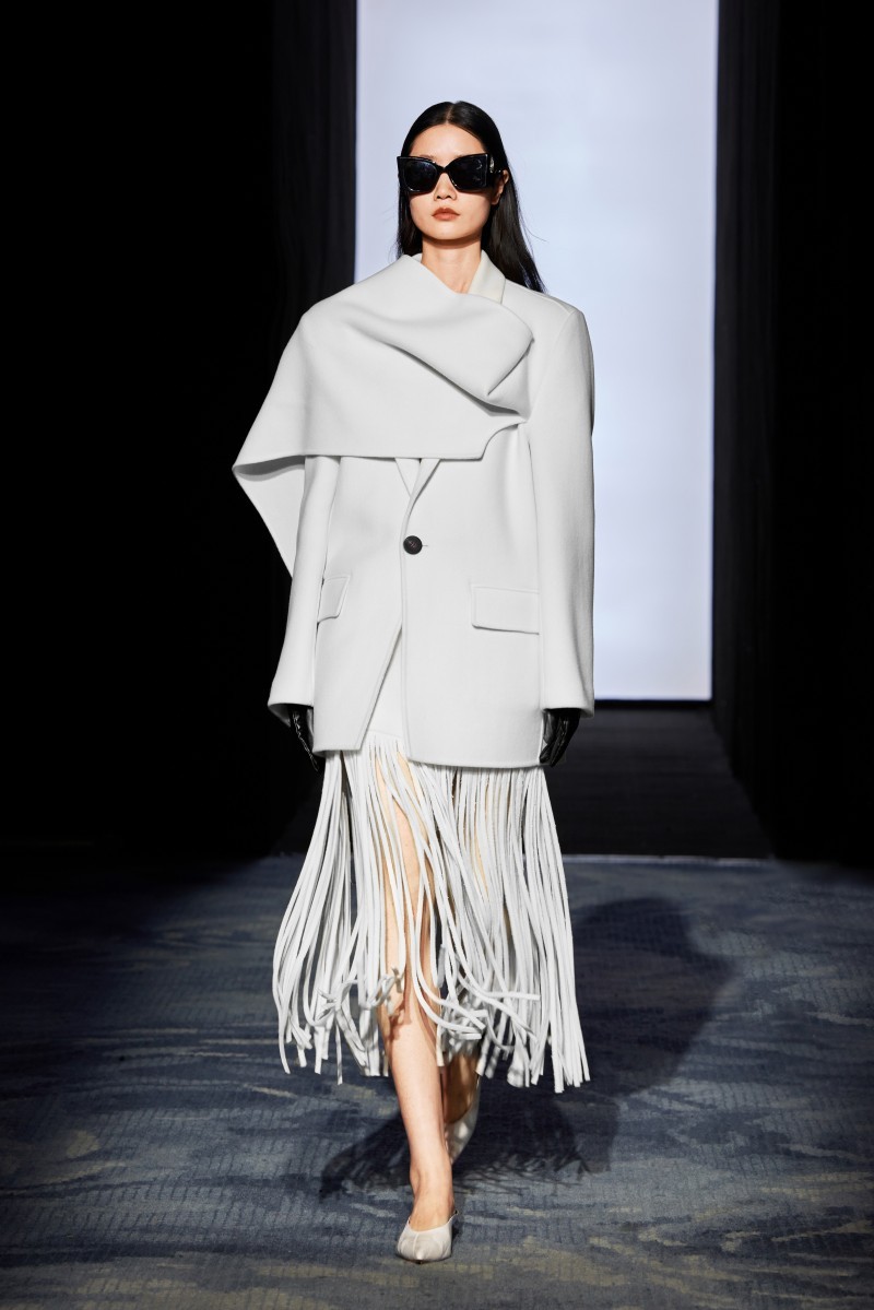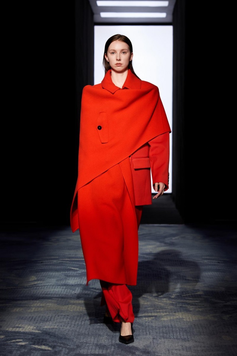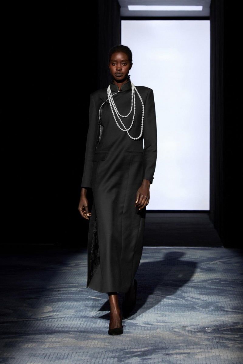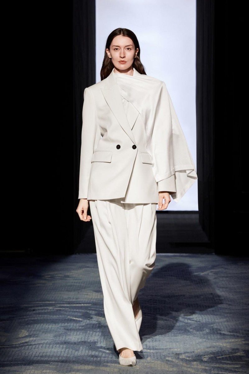 历史影响当下,更定义当下——装束映射不同时空,于现代崭新语境中折射往昔。廓形挺拔、垂坠流畅、极简修身将比例推向极致,服装则轻裹身形,流动的雕塑感、内敛而沉着的色彩描摹于女性身形之上。伊人姿态自然随性,生活方式化为服装构型,女性的无形痕迹得以具象显现。