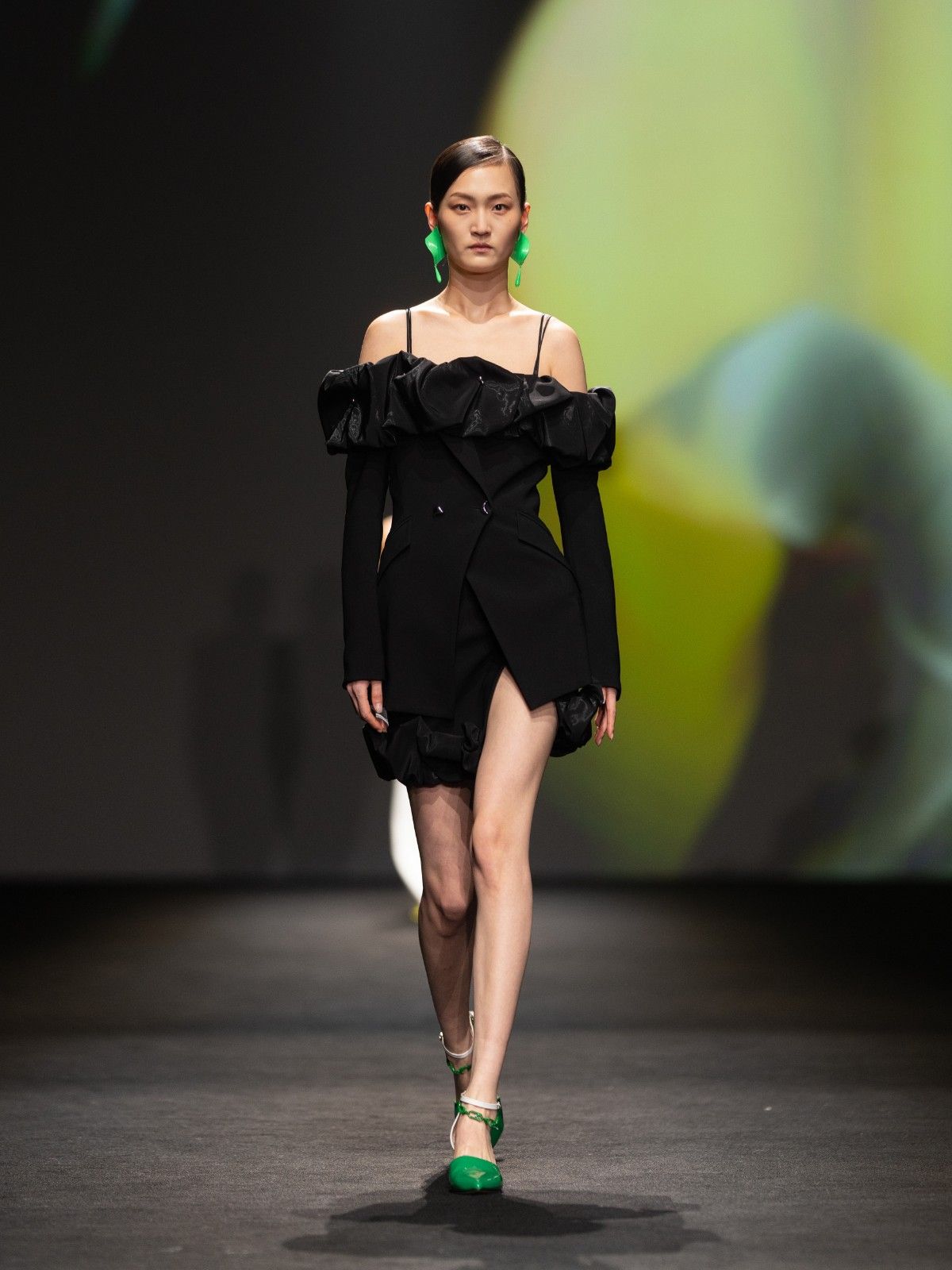 具备体量感的荷叶边造型,以细微的⻥⻣作为构造物而模拟花朵的边缘——或者说,婉约的形态。 更多的款色为COMME MOI女郎奉上烂漫春日的花卉:手工制作的花朵刺绣,描摹盛放的花簇;一 番褶皱肌理同样取自花卉的天然纹理,为盎然的生命力而欢欣。
