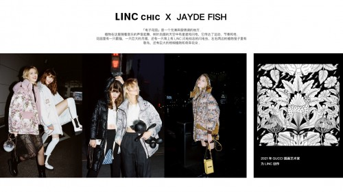 不仅如此,基于时代的发展以及对大环境的观察,LINCchic金羽杰不断对用户的需求进行前瞻性的预测,多年来一直与全球最优秀的设计师、艺术家开展深度合作,2021年首次与GUCCI插画师JAYDE FISH推出电子花园联名系列,2022年,相继与LV 前首席设计师TUOMAS MERIKOSKI,BALENCIAGA 设计师ANDREI ROBU推出三大国际设计师联名系列,后又再度合作国际设计师TUOMAS MERIKOSKI 推出S 系列、F系列羽绒产品。
