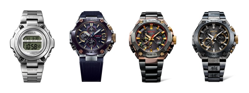 而MR-G系列则源自G-SHOCK在质感和设计上寻求更多突破,所以从诞生之初,MR-G系列便是集G-SHOCK顶尖制表工艺与理念于一身的巅峰之作。比如1996年推出的MRG-100-1,这是MR-G系列首款全金属表款,也代表着G-SHOCK开启了全新的金属进化时代;而且,MR-G除了具有高端的制表工艺之外,还推出过众多具有话题性的产品: 2019日本刀匠上山辉平合作打造“重力丸”,2021的 “华婆娑罗”以及2022年与锻刀名门大师月山贞伸合作打造“二代月山”等等,都是收藏爱好者津津乐道的表款。