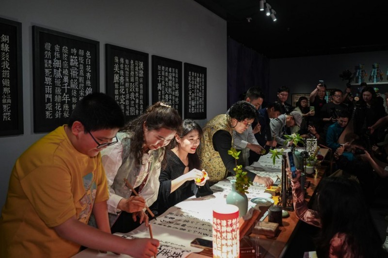 开幕式当天下午,方文山为在场的嘉宾们带来了一场精彩绝伦的导览体验,并联手武汉的书法家以及来自武汉社会各界的市民和学生代表共同参与,通过一场富含古今交融、体现艺术创新与活力的书法行为艺术表演,为公众带来了生动而深刻的观赏体验。