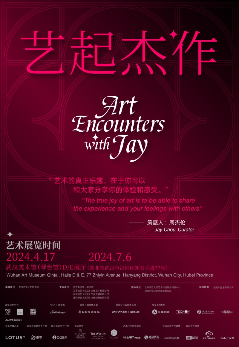由华语乐坛巨星周杰伦担任总策展人的《艺起“杰”作》艺术展览已于武汉美术馆(琴台馆)开展。该展览在4月17日至7月6日期间向公众开放。以“杰”式美学为基调,引领武汉的观众走进一个“音艺交织”的艺术世界。