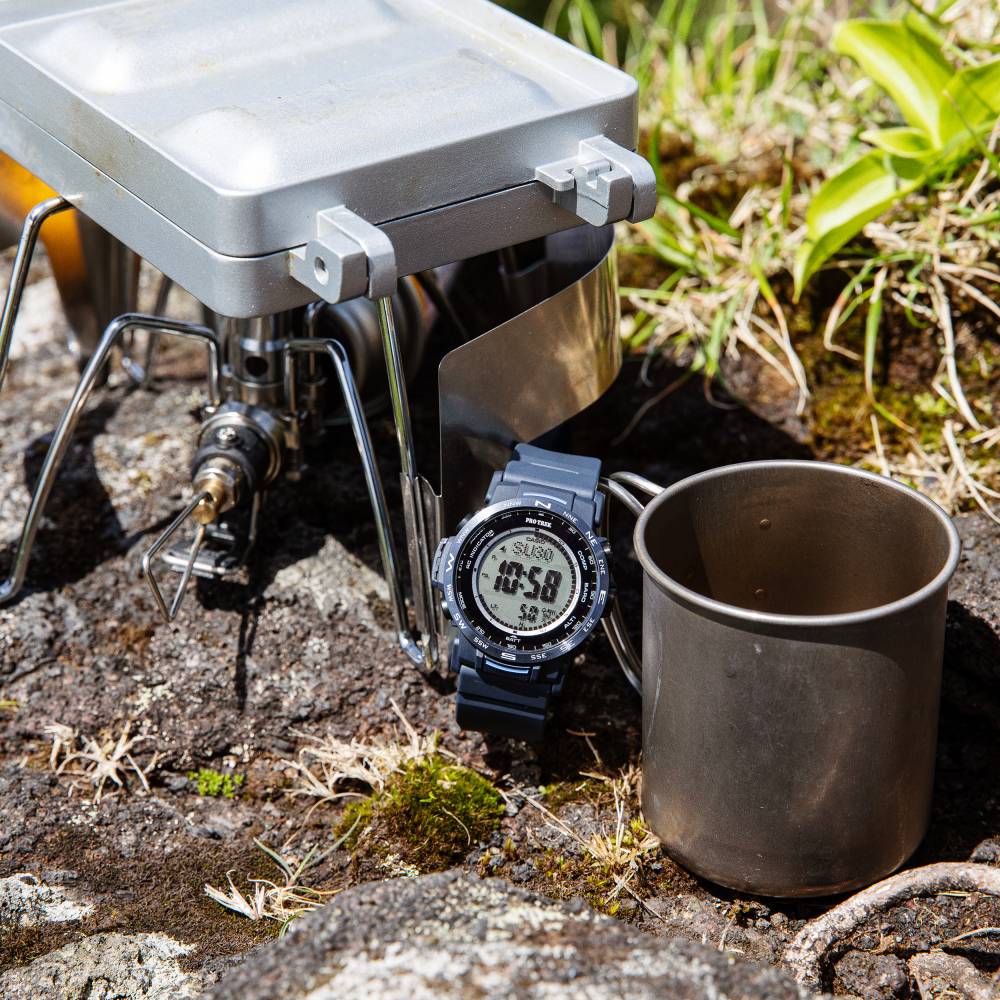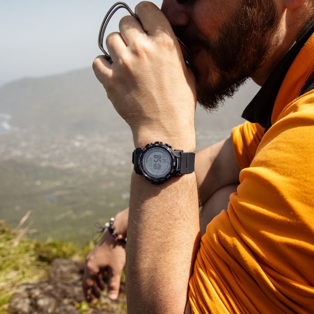 PRO TREK始终贯彻生态可持续的环保理念,PRW-35系列的表带、表壳以及背盖都采用生物原材料为基础的树脂代替纯树脂,在保证坚固耐用的同时力求最大限度减少对环境造成的影响,将“One With Nature”传递到每一位户外爱好者的心中。