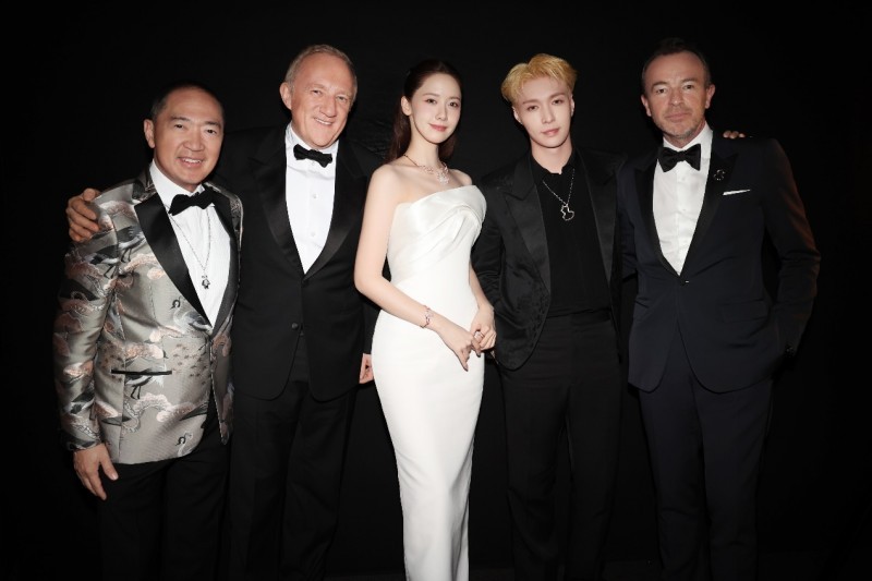 左起:Qeelin创始人暨创意总监Dennis Chan、开云集团董事会主席兼首席执行官弗朗索瓦-亨利·皮诺(François-Henri Pinault)、Qeelin品牌代言人林允儿、Qeelin全球品牌代言人张艺兴、Qeelin首席执行官 Christophe Artaux