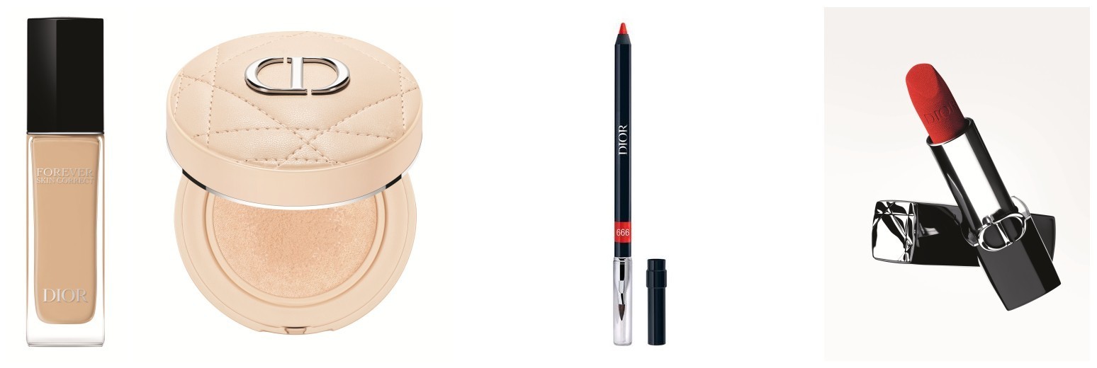她选择以迪奥凝脂恒久修颜遮瑕蜜,迪奥凝脂恒久气垫蜜粉,迪奥烈艳蓝金唇线笔 999,及迪奥烈艳蓝金唇膏999 丝绒。轻描间,打造优雅摩登的高订妆容。