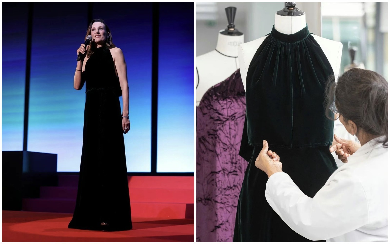 而墨绿色天鹅绒长裙,糅合复古韵致与摩登风范,诠释典雅与灵动之美。