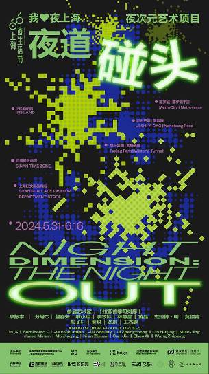 “夜次元——夜道碰头”艺术项目携手艺术家毕振宇、分号C、坚春天、啾小组、李政钟、林慧晶、苗晶、杰拉德·明、莫佳青、念子轩、叁玖、沈琪和王志鹏,、在六月的上海夜晚展开创作。在过往的创作中,他们与“夜次元”一样,充满热情地关注着城市生活,并用各自的方法与行动,将艺术创作融入街头巷尾的日常情境。