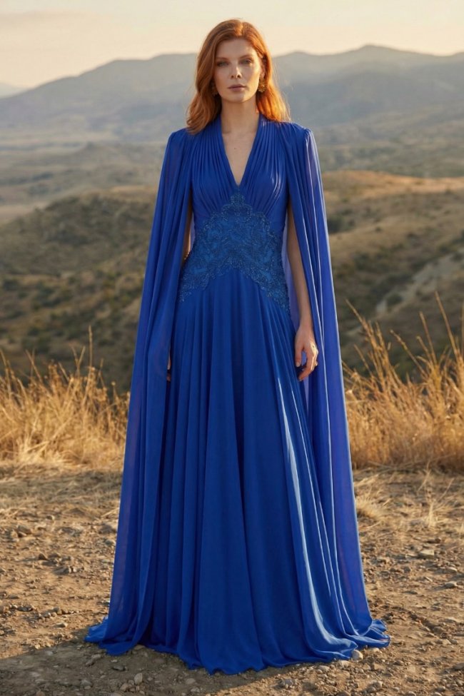 渐变亮片如夜空闪烁,肌理绉纱随身姿起伏,恰似风与大地留下的温柔轮廓。
