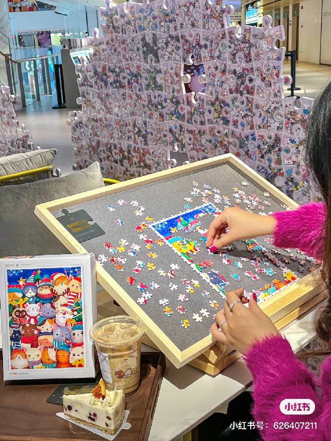 除了宅家拼图之外,现在有咖啡拼图馆,coffee & puzzle,坐在店里悠闲地拼一下午也太舒适了吧,拼图更是成为了一种生活方式。