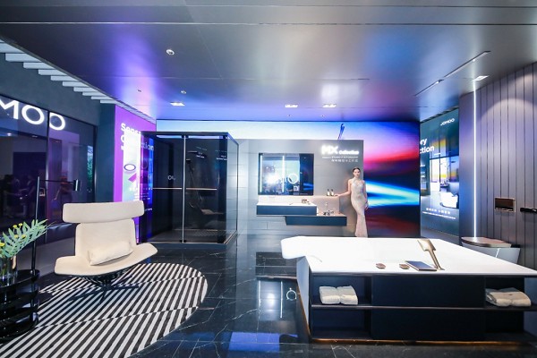 在本次展台上,九牧的数字化科技套系“Sensa智幻空间2.0” 让一众参观体验者直呼神奇,它采用领先全球的IoT物联技术,同时具备健康监测系统、人脸识别等前沿智能科技,让用户能真正实现“动口不动手”的沉浸式体验。