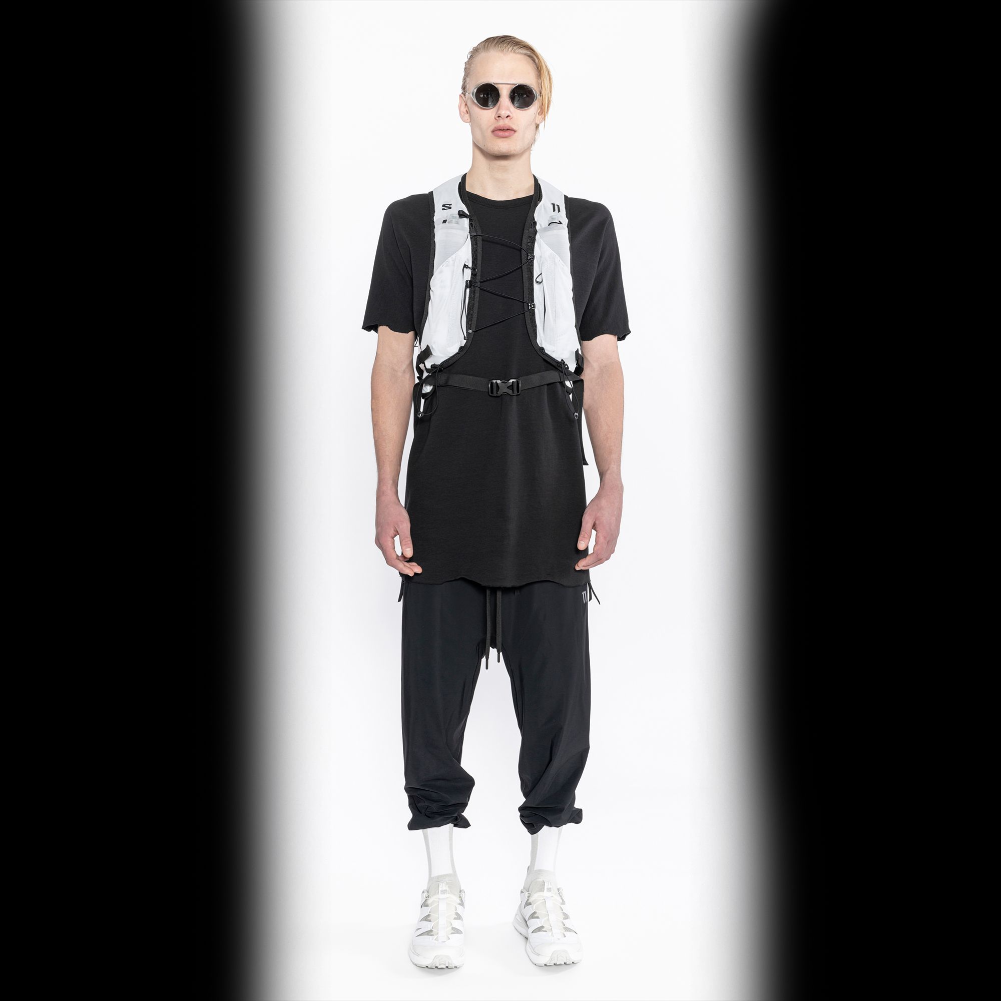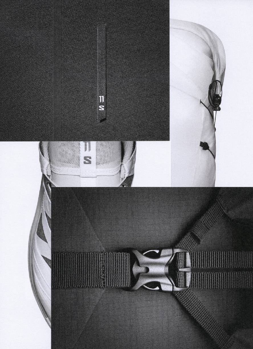 服配部分则延续了时尚感与功能性的融合,将代表 Boris 个人风格的「11」符号化缩影运用于设计中,展现了时尚审美和高性能装备的独特双重性,为众人留下浓烈的先锋探索印象。11S JACKET A.B.1 夹克采用三层不含PFC-Free的 GORE-TEX材料打造,提供持久的防水、防风和透气保护,同时配备两个拉链胸袋、可调节的帽子和尼龙扣袖口,满足日常穿着需求;11S TOP A.B.1 上衣不仅注入前卫设计,更采用轻便网眼织物,以确保穿着时拥有舒适体感;11S PANT A.B.1 裤子以舒适为前提,在裤子的关键细节部分加入具有一定弹性的口袋,使其更具实用性;11S BAG A.B.1 背包采用有效抵抗风雨的防撕裂面料。在提供充分的携带舒适度同时,提供 35L 的储物空间,确保在户外活动中轻松补水。