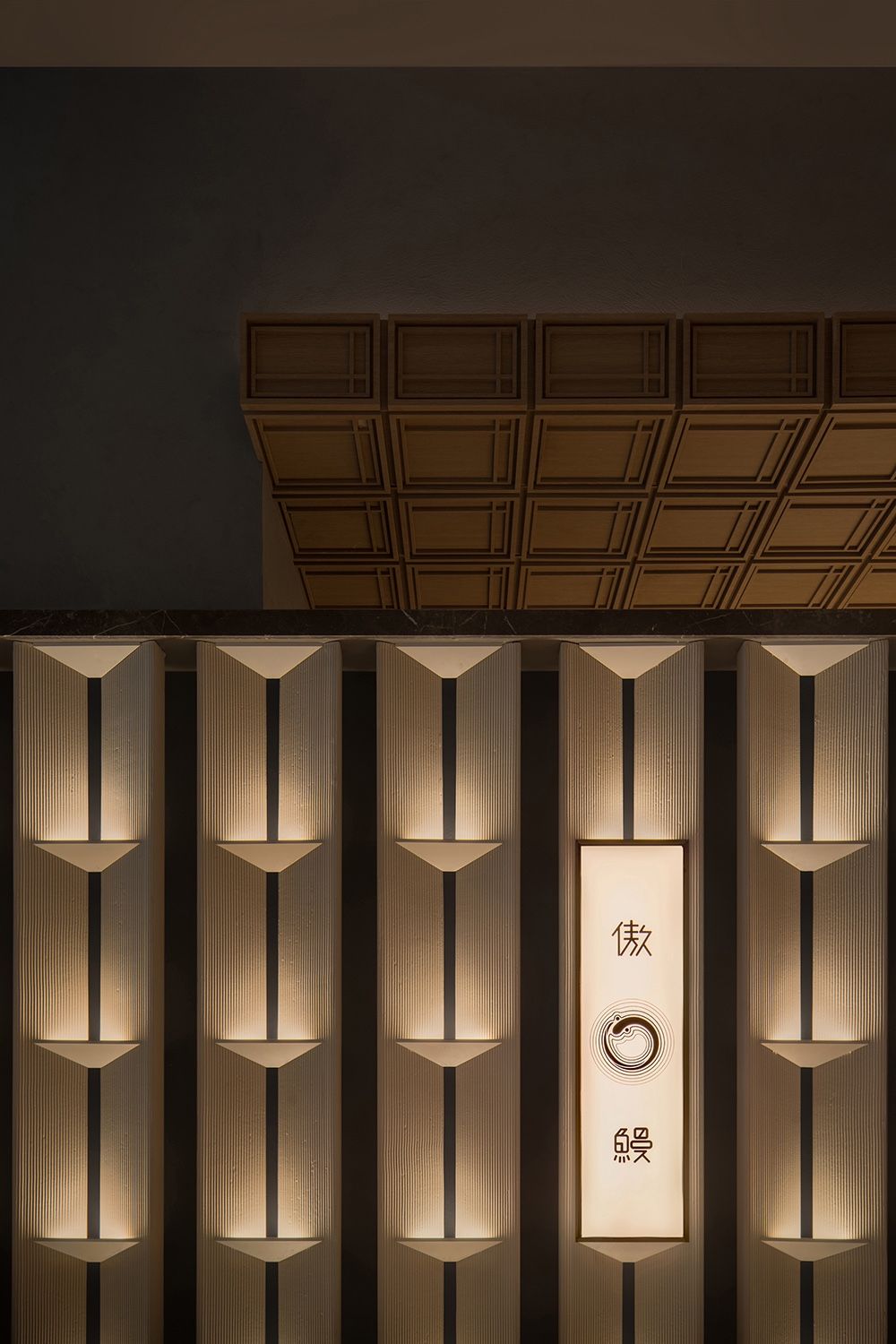 傲鳗作为京城中首屈一指的鳗鱼饭,师从日本三重县烤蟹大师伊藤忠,从创立之初,一直遵从关西传统烤鳗技法,强调对于食材的极致鲜美追求与味觉的精细演绎。设计师希望以空间制造一个此时此地的“境”,让食客不仅仅可以品尝最正宗的珍馐之味,更若身临其境一般沉浸感受着原汁原味的风土人文。