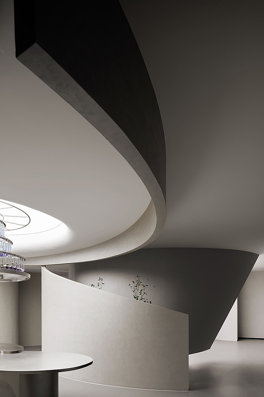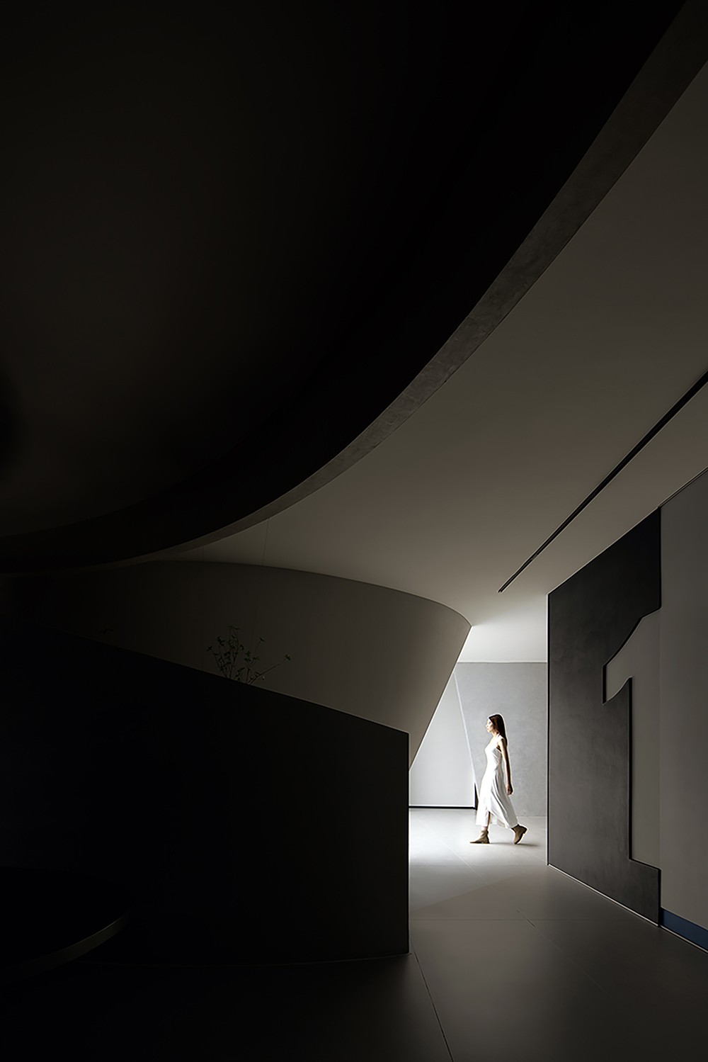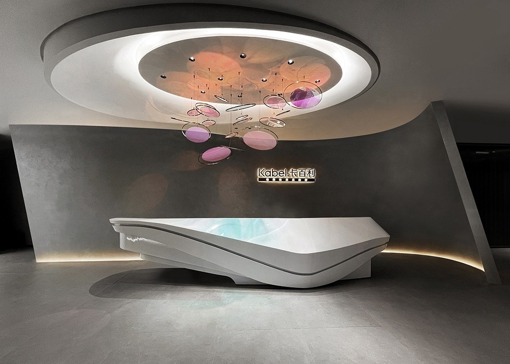 项目业主卡百利(Kabel)是一家专营艺术涂料的品牌。展厅的设计灵感源自艺术家的画笔,任意流动的墙面造型犹如画笔肆意涂抹出来的杰作,又仿佛是一个舞者在空间中旋转的动作轨迹,每一道曲线都是一次创作的瞬间,勾勒出了艺术家无穷的想象和创造力。