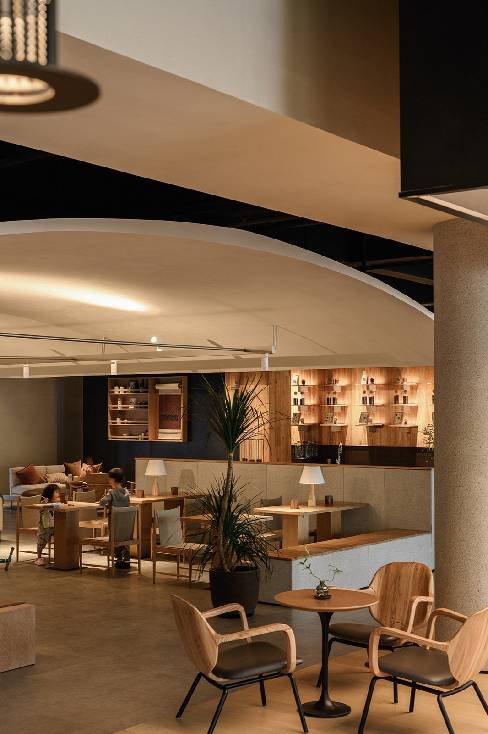 面对这样一个承载着这样的复合业态的空间,我们改造上既需要尽可能通过连续性开放性的空间保证运营方日后的灵活使用,再通过柔性的手法来塑造空间的边界,划定领域范畴,在保证合理的安置好餐、酒、咖啡吧等商业功能外,更重要的是以场所为媒介为社区的人们提供一处具有社区服务性质的公共空间,为社区的人们提供了一个自我学习与亲子相伴的空间,人们也这里相聚、约见。