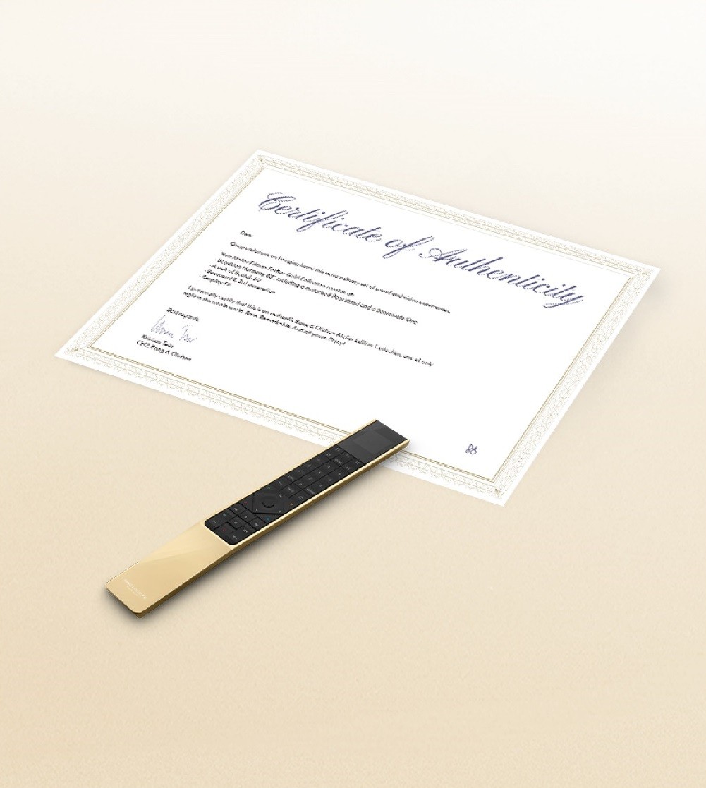 采用整块高级铝材经阳极氧化铝工艺打造而成的BeoRemote One遥控器上将为每一位用户独家镌刻姓名,并特别提供品牌证书,礼藏龙年,私享福瑞满盈。