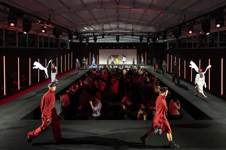 作为本场大秀的核心主题,“英雄,所见不同” 贯穿了从秀场布局、环境氛围、造型呈现到单品风格之间的每一个环节。步入秀场,大面积的红黑撞色设计以强烈对比突出了每一套搭配所带来的视觉冲击,错落光效特别放大了模特的登台动作,仿若英雄登场。与此同时,PUMA合作“天猫超级品牌日” 的大秀直播也让众多时尚、街头文化乃至赛车爱好者近距离领略潮流的无限可能。