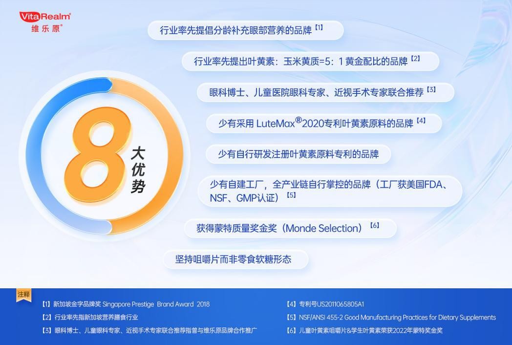 不仅如此,VitaRealm维乐原在叶黄素领域还有着八项优势