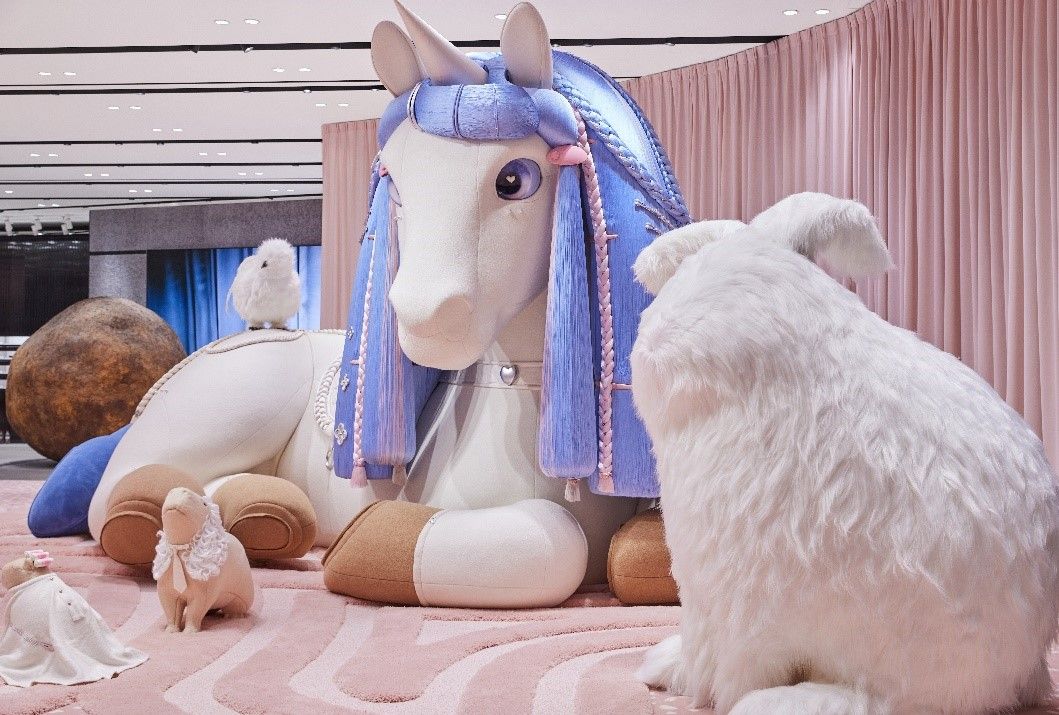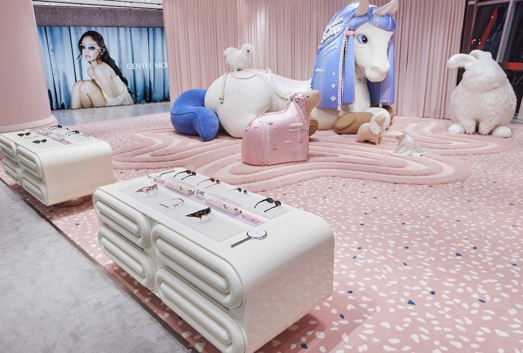 JENTLE SALON限时联名空间为GENTLE MONSTER与JENNIE共创的第三个幻想世界。柔软可爱的玩具在GENTLE MONSTER的笔触下,化身围绕独角兽展开的超现实物象,生动描绘出JENNIE充满想象力的奇幻梦境。