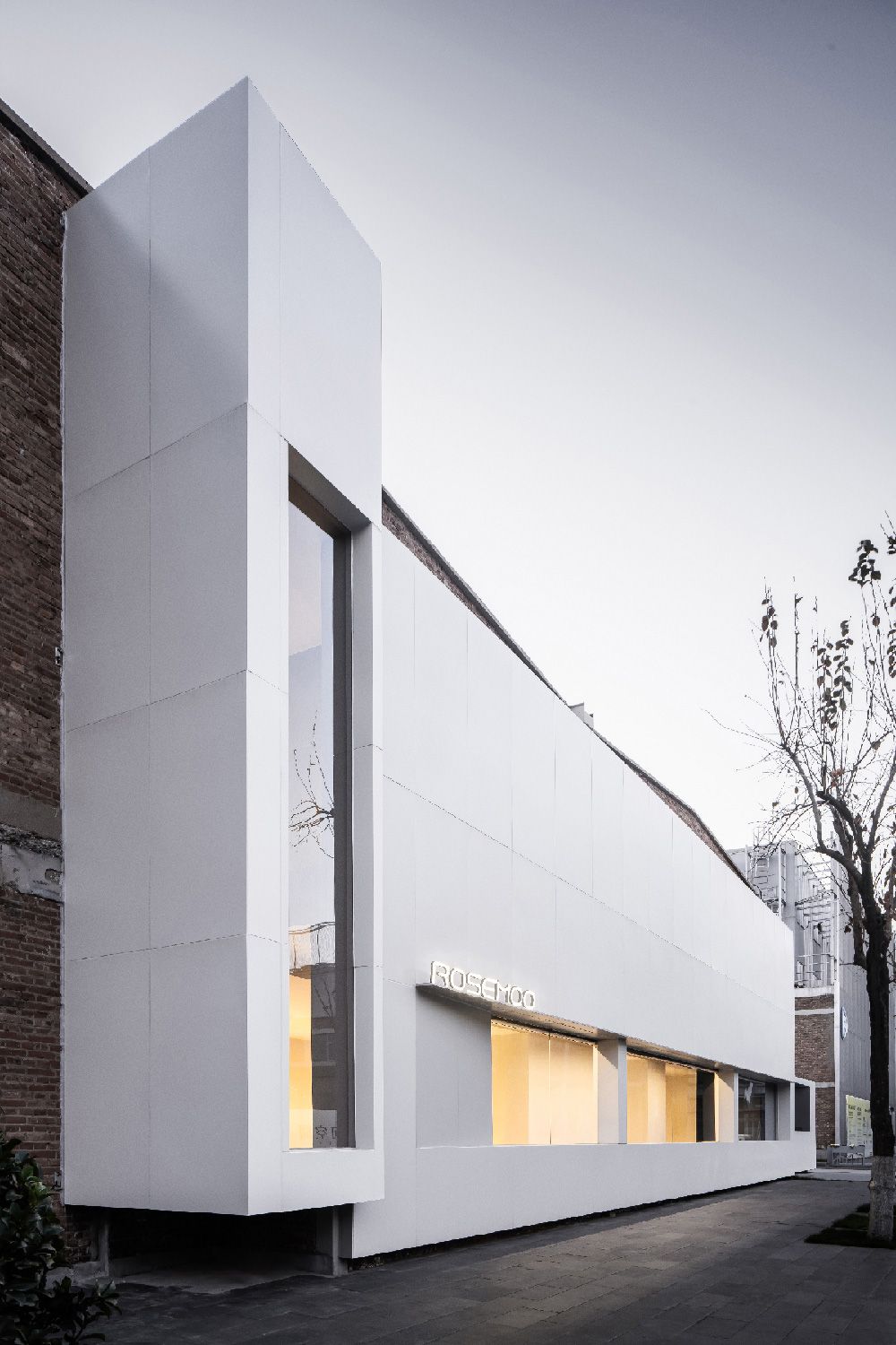 仓库建筑原本开敞格局与优越的挑高为创意类办公空间提供了丰富的空间可能性,在留原工业遗产的线索之上,崔树通过雕塑般的手法,在建筑内外制造了的两个体量,既实现了作为品牌总部的识别性外观,同时满足内部不同功能的有机融合组织。