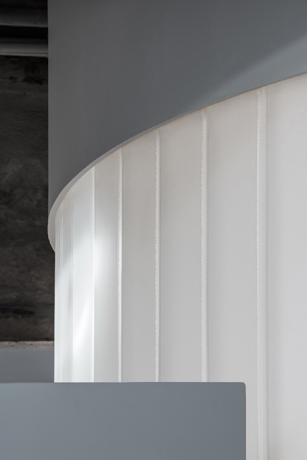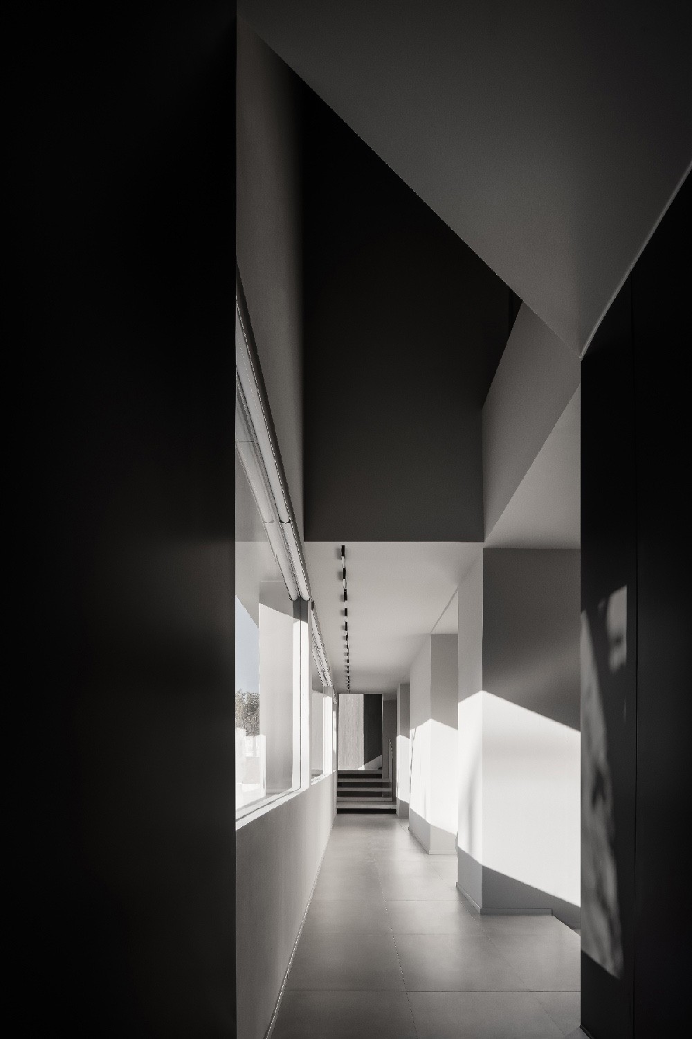 不仅尽可能的露出建筑的原始结构以呈现质朴的肌理感,更是精巧地运用竖向与横向的条形窗户以及天窗设计,有效地引导自然光线进入室内,巧妙地调控空间内的明暗对比,形成既有重点照明又有柔和漫射光的光影效果,局部构建出一种“光在其中”的诗意境界。
